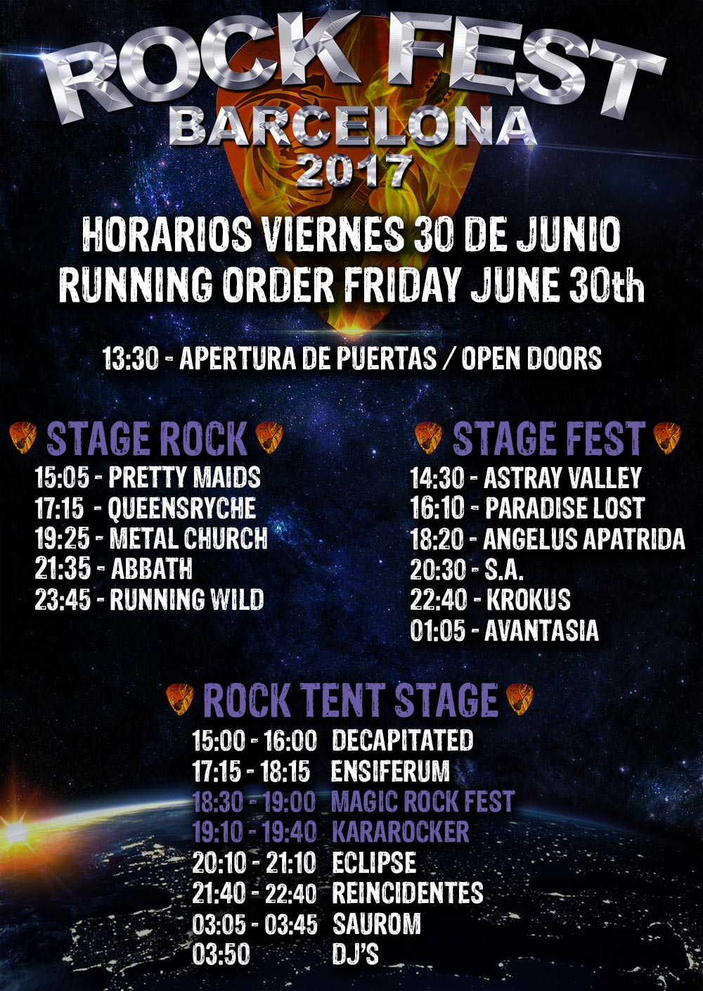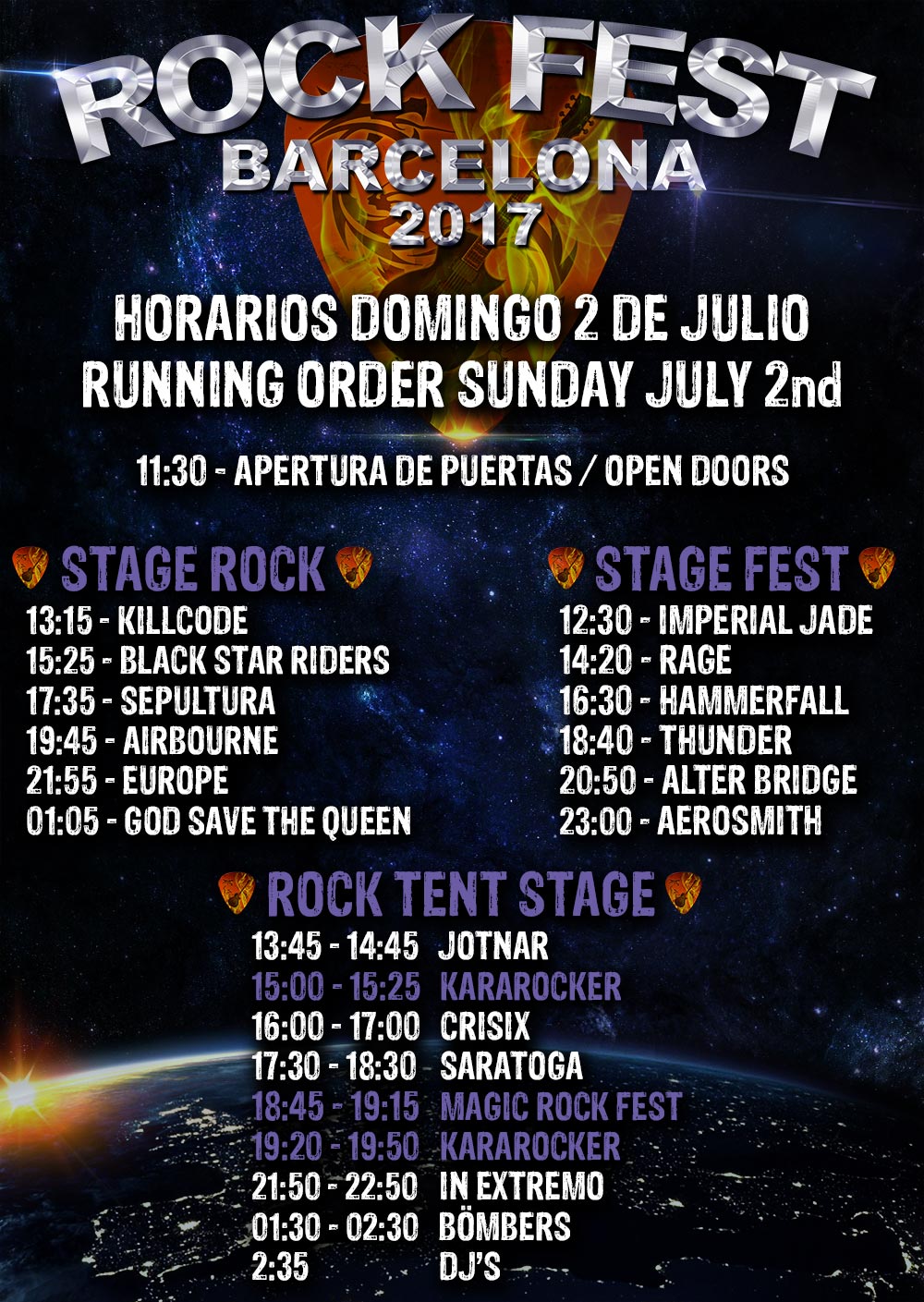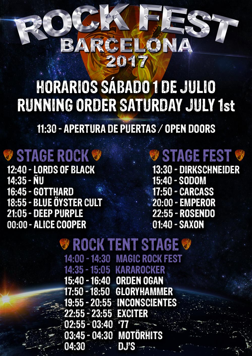Rock Fest Barcelona, que se celebra el 30 de Junio y 1 y 2 de Julio de 2017 en el Parc de Can Zam de Santa Coloma de Gramenet (Barcelona), ya tiene disponibles los horarios.