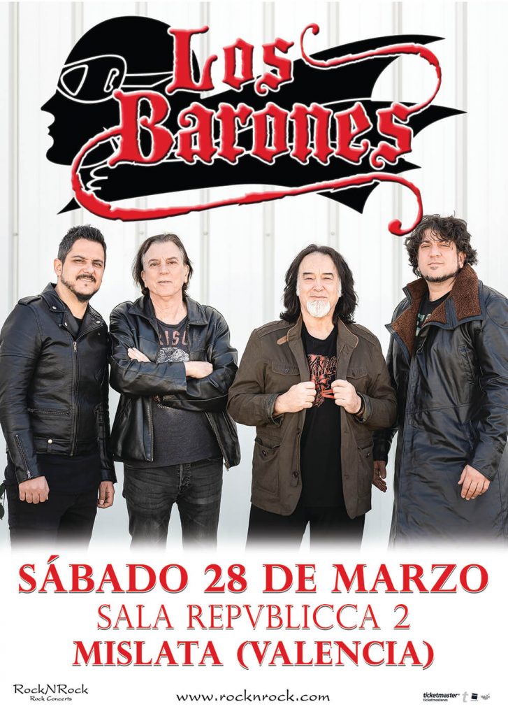 El grupo de rock Los Barones, actuarán el próximo sábado 28 de marzo en la Sala Repvblicca 2 de Valencia.