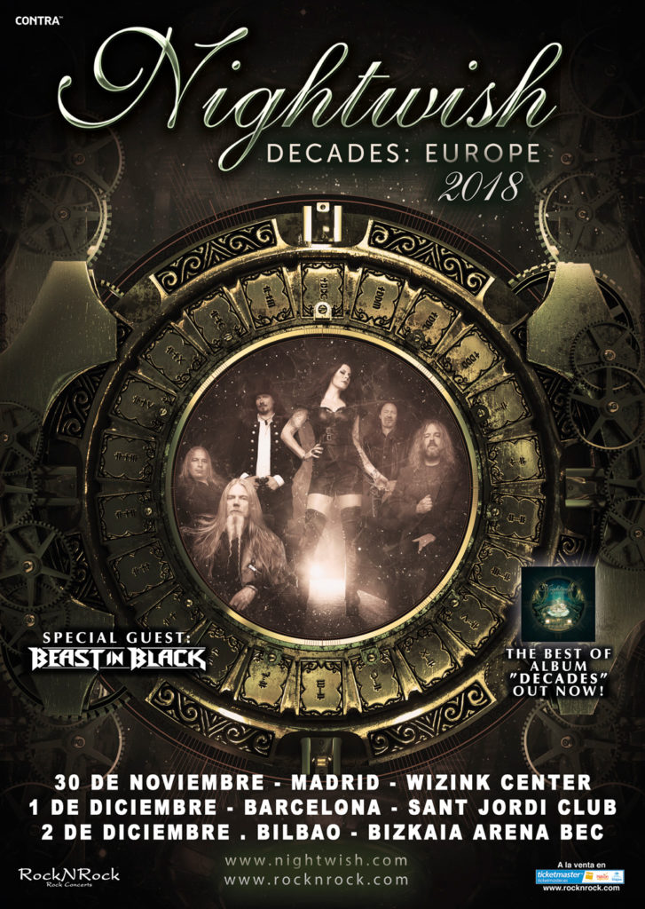 Dentro del marco de “Decades World Tour”, la banda capitaneada por Tuomas Holopainen visitará Madrid, Barcelona y Bilbao en otoño de 2018. Se trata de su primera gira por el país desde el año 2008, excluyendo sus apariciones ocasionales en festivales. Un espectáculo sin igual que alcanza todo los sentidos y que nos sumerge dentro de la peculiar creación de un grupo que no pierde la inspiración pasen los años que pasen.