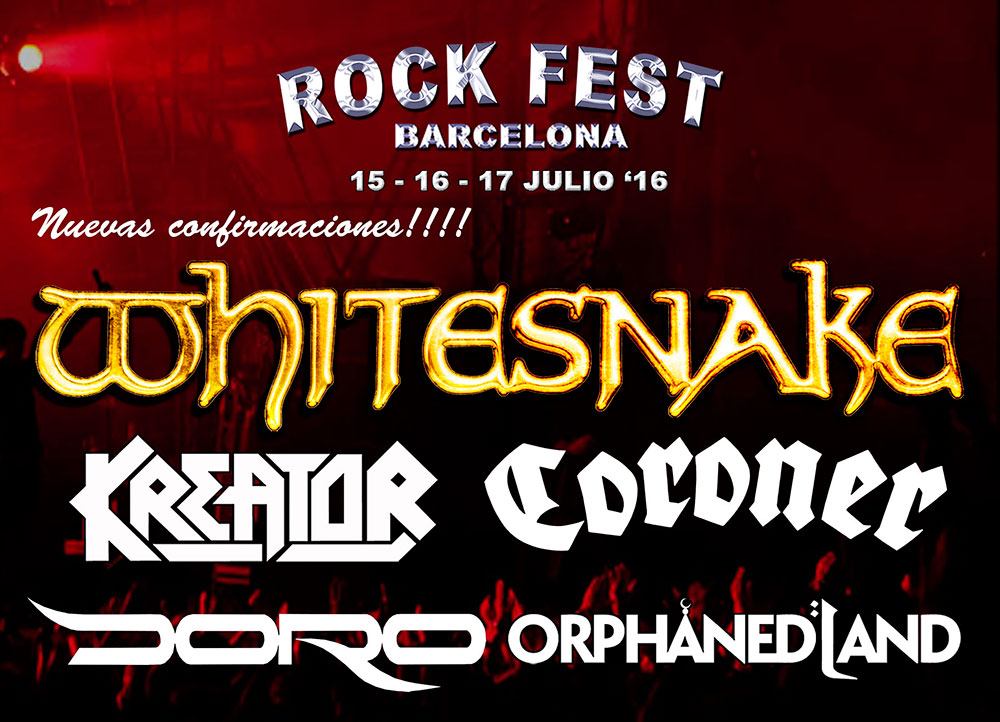 WHITESNAKE, KREATOR, CORONER, DORO y ORPHANED LAND son las nuevas bandas confirmadas para actuar en Rock Fest Barcelona, que se celebrará el 15,16 y 17 de julio de 2016 en el Parc de Can Zam de Santa Coloma de Gramenet.