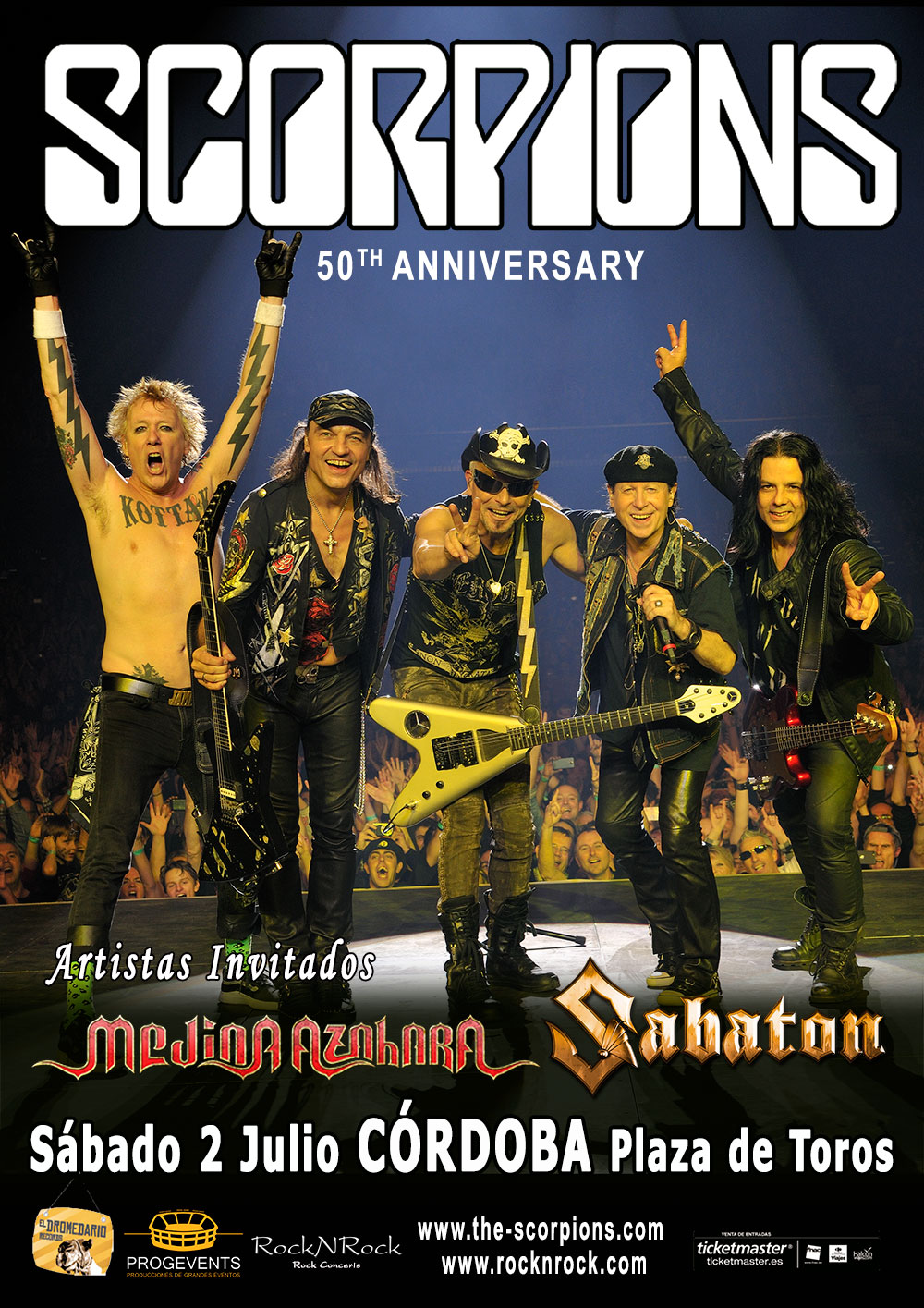 Para completar la gira 50º aniversario de SCORPIONS por nuestro país, la banda alemana actuará el sábado 2 de julio en la Plaza de Toros “Los Califas” de CÓRDOBA, dentro de la 36ª edición del Festival de la Guitarra de Córdoba.