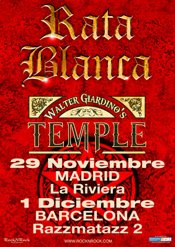 Como fecha especial dentro de su tour mundial en solitario, Walter se presentará junto a su banda Rata Blanca en Madrid y Barcelona.
