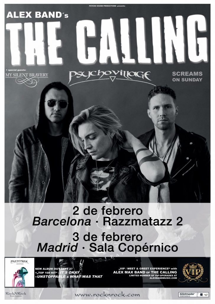 Alex Band of The Calling le acompañará en sus conciertos las bandas: Screams on Sunday, My Silent Bravery y Psycho Village.